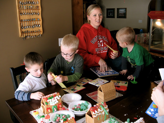 First activity was decorating gingerbread houses. Here's Tana making the frosting.