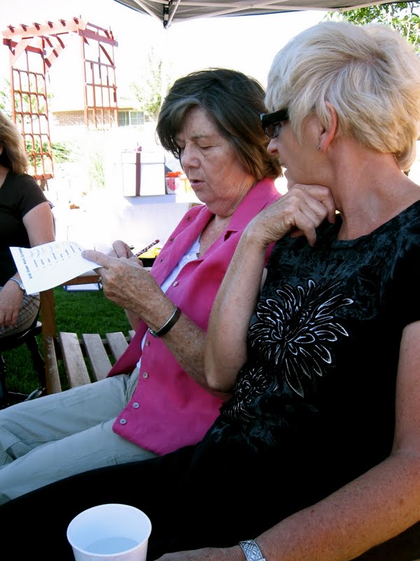 Then we ate Laura's delicious chicken salad that I have been craving every day since the shower. We also had a fruit salad, rolls and lots of little desserts -- including some peanut butter bars I made that barely survived the drive across Utah. They were ugly, but they were good!