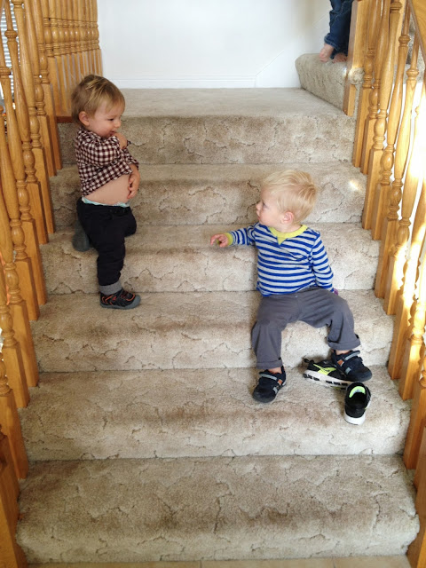 I somehow just barely saw this cousins post. Cute commentary of the boys on the stairs together. So glad Eli loves his cousin so much.