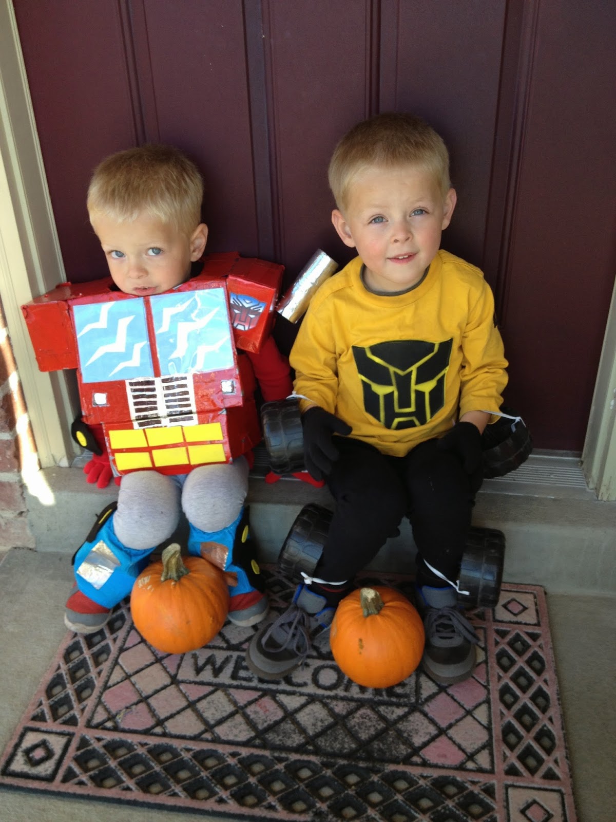 When the boys have their costumes on, they go into full character. They don't talk. They only make transforming noises and strictly, robotically call each other Optimus and Bumblebee.