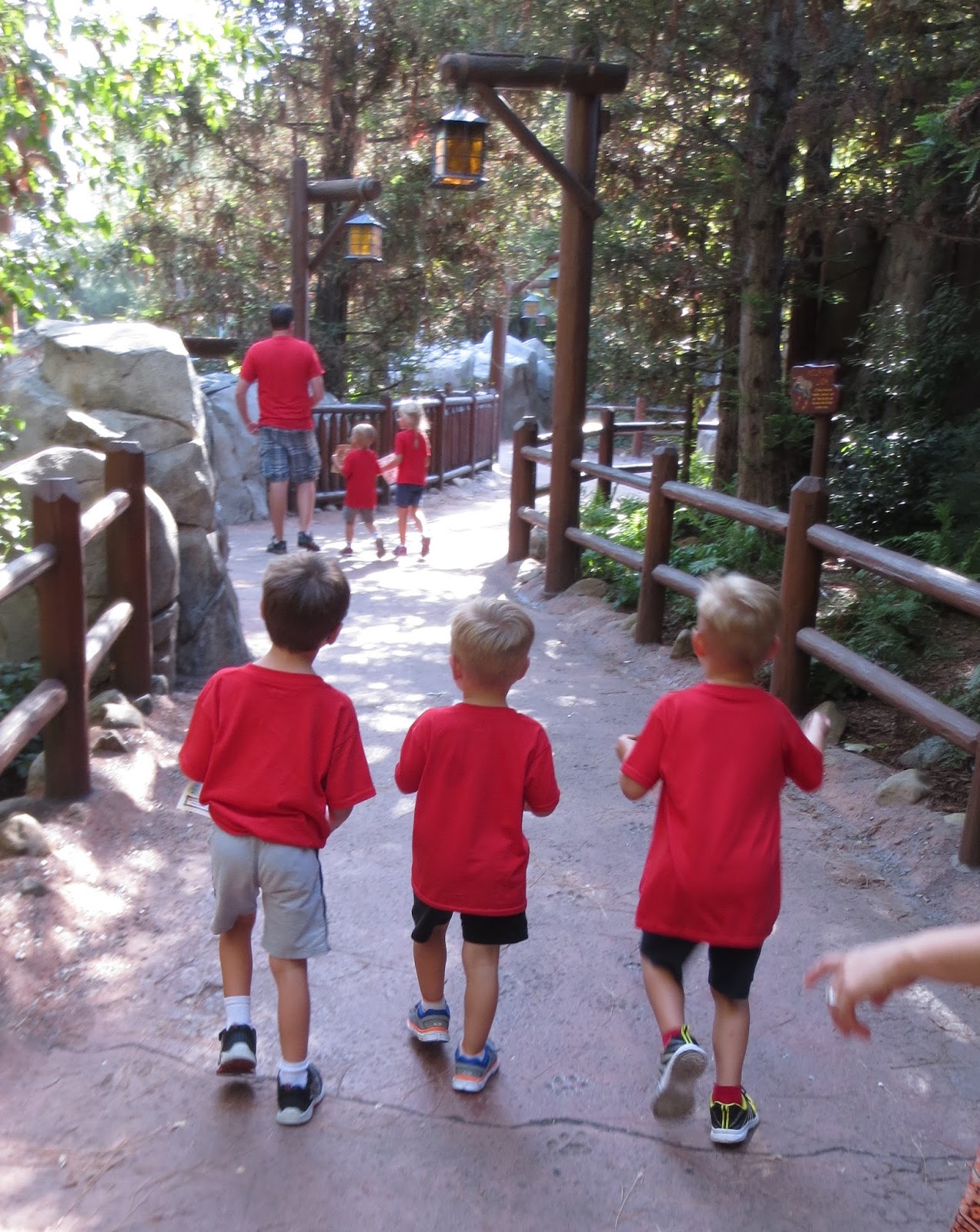 We had at least three little boys eager to grab a glance at Cars Land for our first taste of Disney, so we wore our Cars shirts to help rev up their Lightning McQueen excitement.Out of all the times we stood in front of this wall and took a family picture, you'd think we could have managed one non blurry shot where everyone was at least generally looking at the camera. But nay. This is about as good as it will ever get.