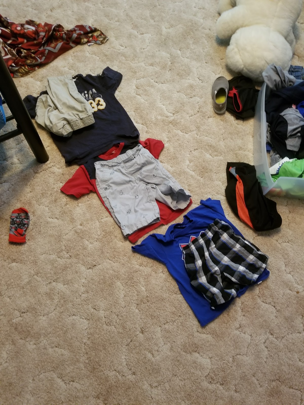 Speaking of fashion, Carson's interest in clothes is one of my favorite things about him. He loves clothes. He loves getting new clothes. He loves being adventurous with his wardrobe. He has great attention to detail when it comes to what he wears. I was tickled when I walked past his room one afternoon to find he had thoughtfully laid out his outfits for the rest of the school days in the week.